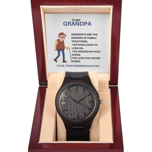 Wooden Watch for Grandpa – Gift from Granddaughter with Personalized Message Card