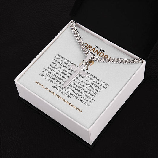 To My Wonderful Grandpa – Personalized Cross Necklace with Cuban Link Chain Gift from Granddaughter with Heartfelt Card