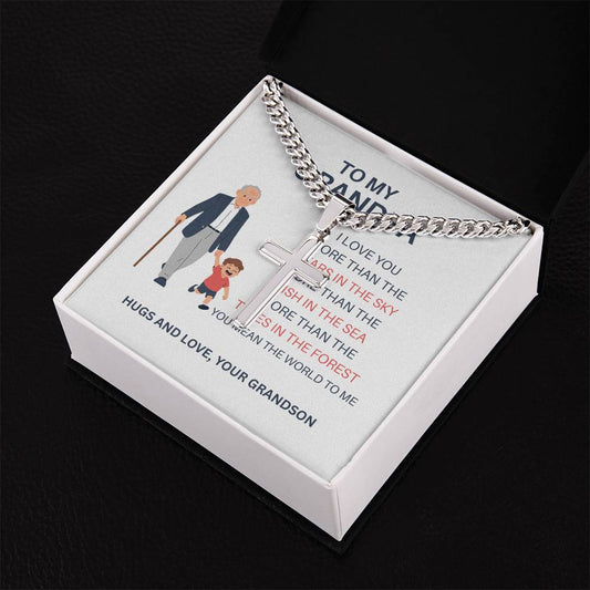 To My Beloved Grandpa – Custom Cross Necklace on Cuban Link Chain from Grandson, Gift with Heartfelt Card