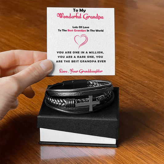 To My Grandpa – Men’s Bracelet Gift for Grandpa from Granddaughter, Cross Design
