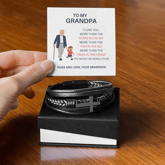 Men's Cross Bracelet for Grandpa — Gift from Grandson with Heartfelt Message Card