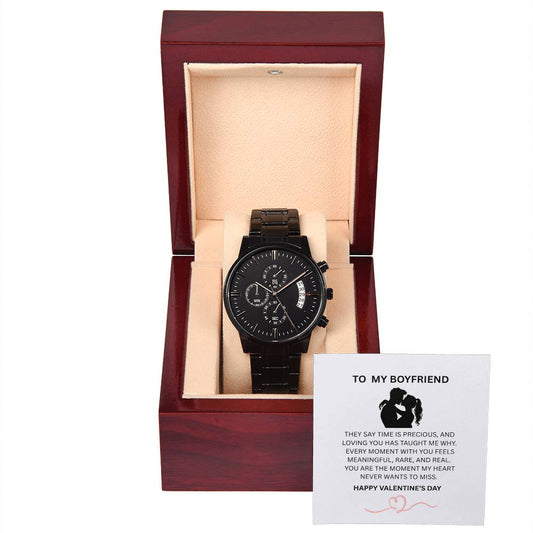 To My Boyfriend – Valentine’s Day Black Chronograph Watch Gift