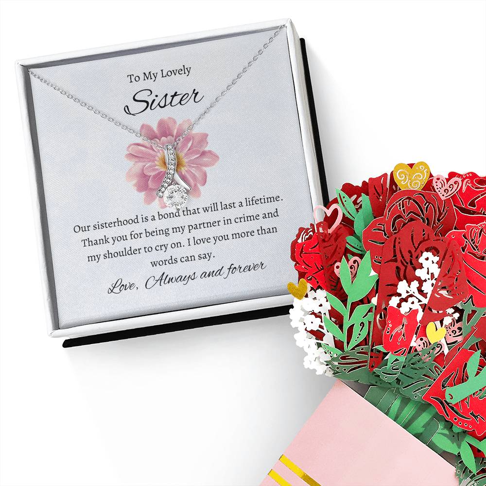 For My Sweet Sister – Beauty Necklace & Flower Bouquet | Captivating Present For Sister