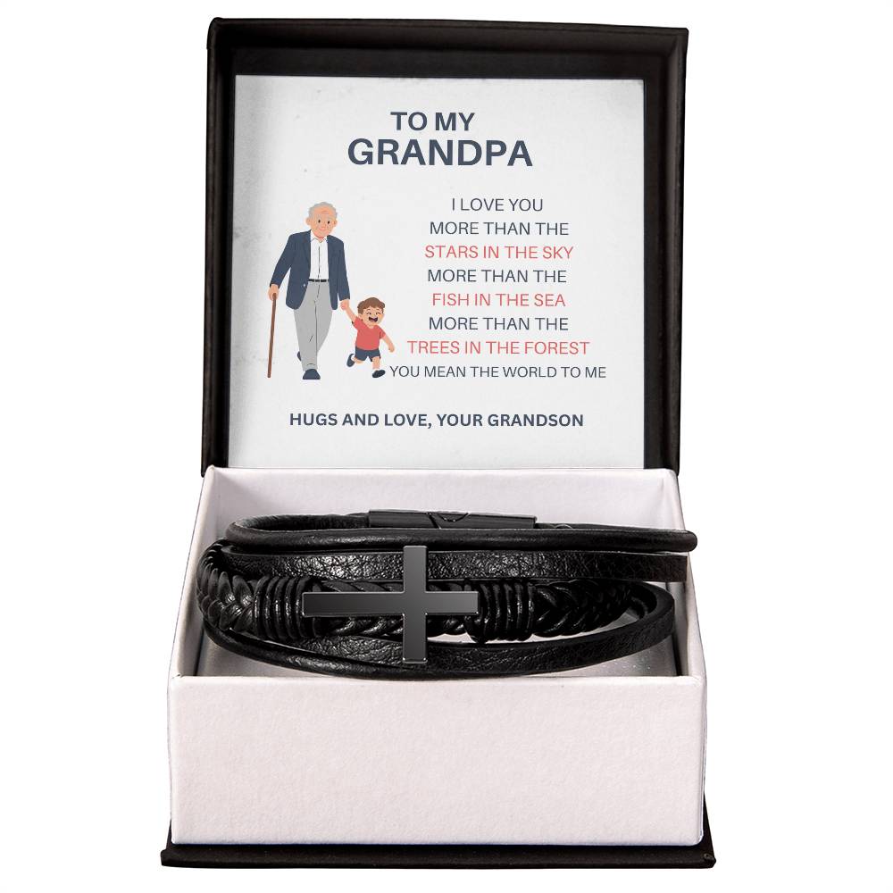 Grandpa Gift from Grandson — Men’s Cross Bracelet with Message Card