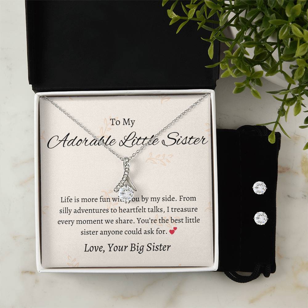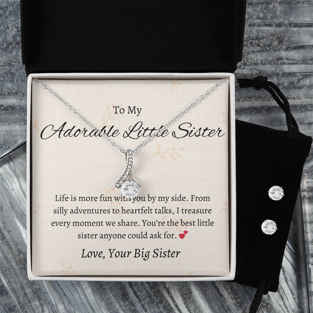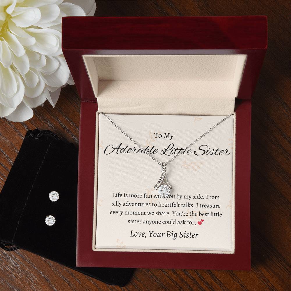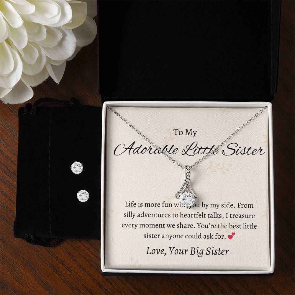 To My Adorable Little Sister – Necklace & Earring Set | Heartfelt Gift for a Special Sister