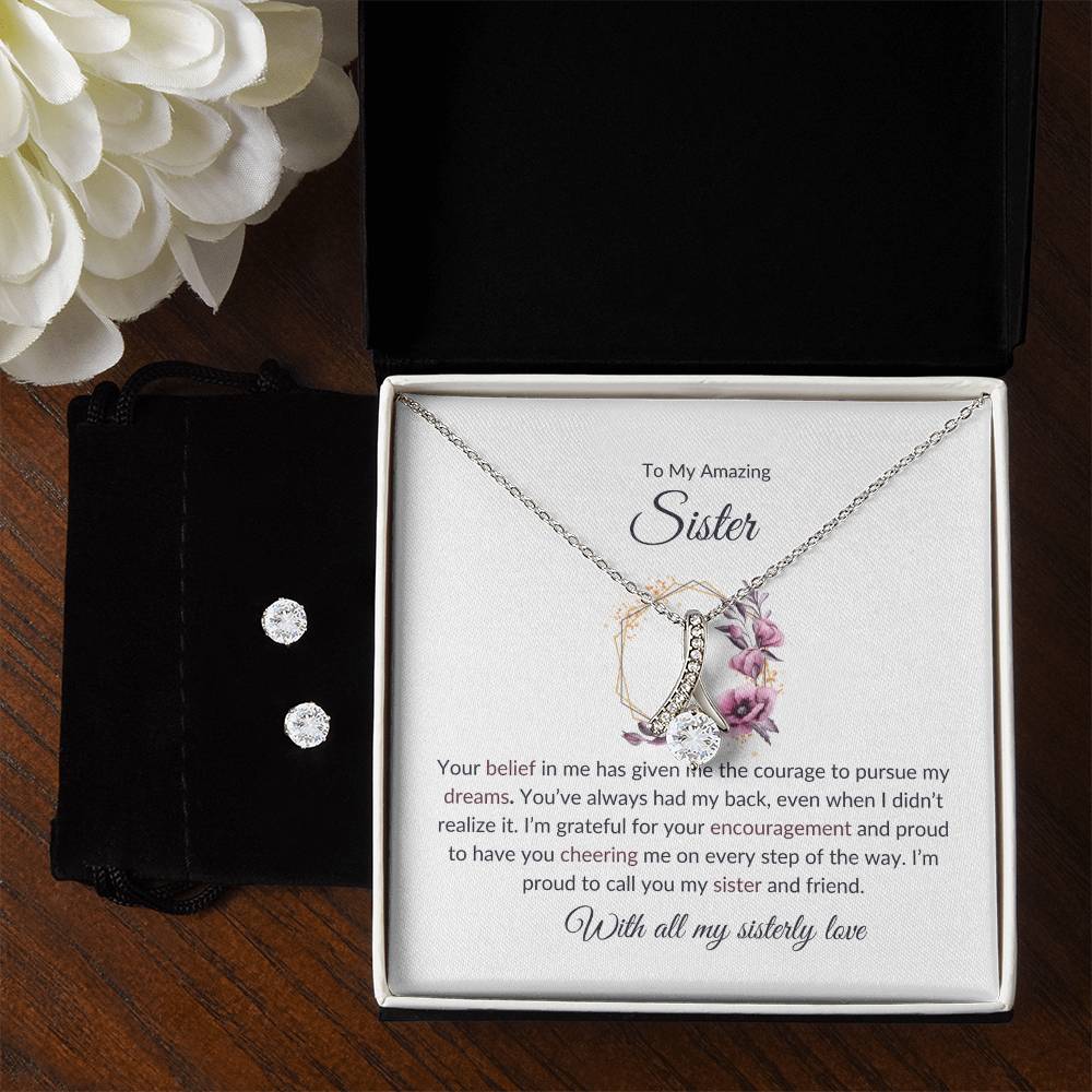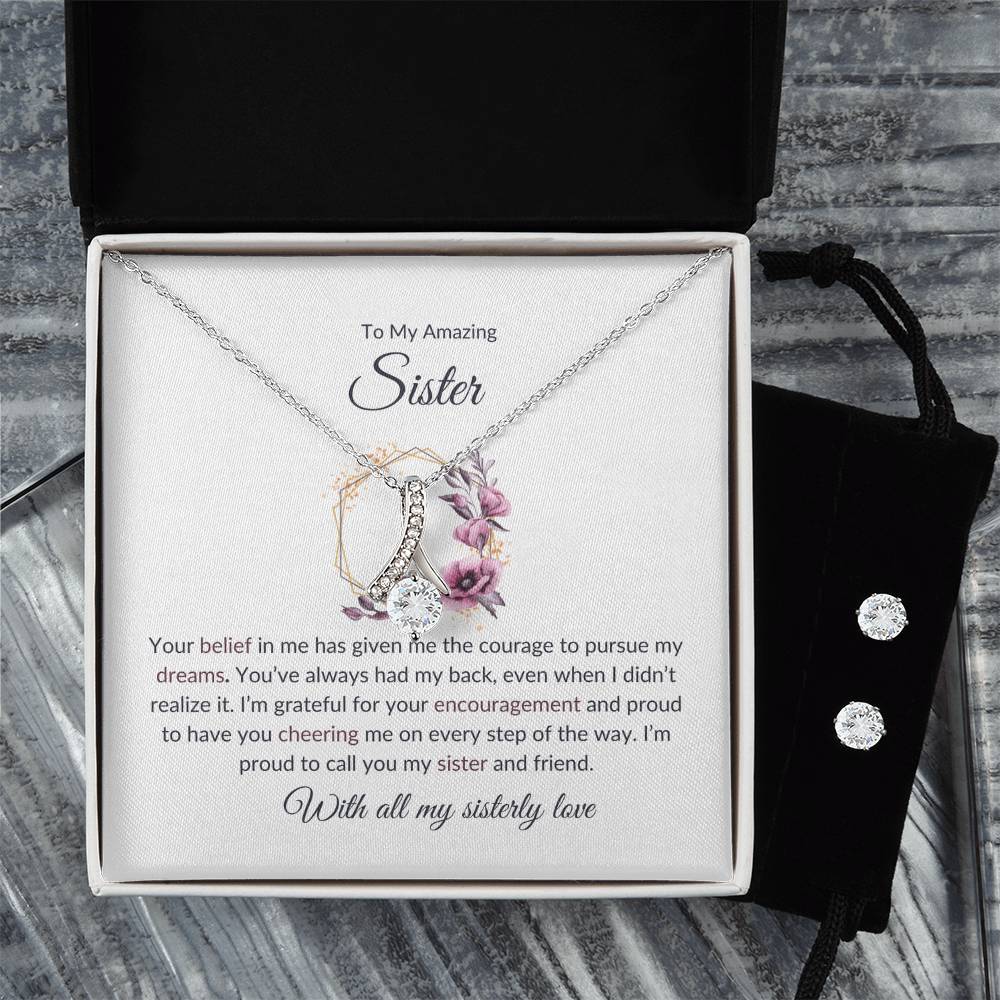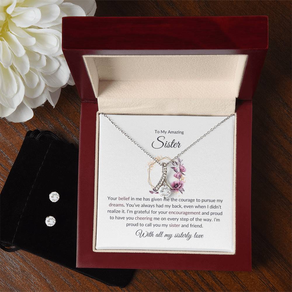 To My Amazing Sister – Elegant Beauty Necklace & Earring Bundle | For the Best Sister Ever