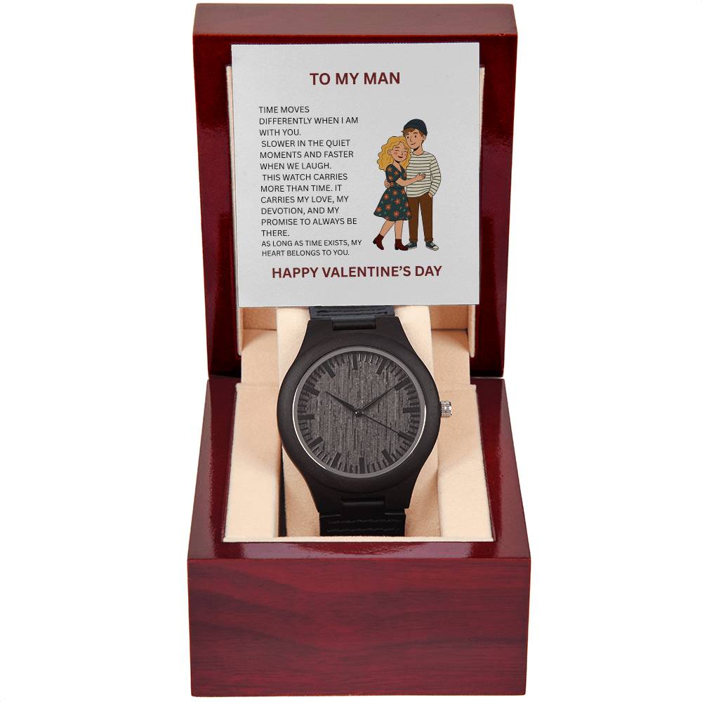 To My Man - Wooden Watch Gift with Valentine’s Day Message Card